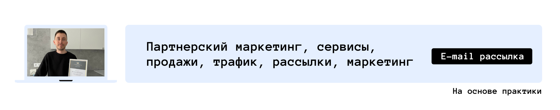 | ✍ 8 частей, из которыз состоит доход на партнерках. | | | | 8 частей: | Которые входят в мою новую услугу, через которую вам будет проще на 30-70% построить свой проект на партнерках, базах и трафике.Подробности здесь >>8 частей:1. План и цели: помощь в составление плана действие и постановка реалистичных целей.2. Система: помощь в продумывание системы работы, которая будет выстроена на практике.3. Партнерки: помощь в подборе партнерских программ и понимание какая партнерка прибыльна.4. Тех.часть: помощь в организации технической части всей системы по сбору и монетизации трафика.5. Маркетинг: помощь в изучении и внедрении маркетинга в прописанную систему продвижения партнерок.6. Трафик: помощь в организации привлечения трафика для набора аудитории и монетизации.7. Анализ: помощь в анализе текущих действий для поиска ошибок и слабых мест в работе с партнерками.8. Исправление: помощь в исправлении найденных ошибок с целью улучшения ваших результатов.Жмите на кнопку и бронируйте реализацию этих 8 частей в партнерском маркетинге. | | | | | | | | На сегодня все - на связи. | | | | Помните: интернет-бизнес хоть и прибыльное, доступное, растущее, интересное и развивающееся направление, но оно в то же время и - сложное. | | | Вы получили это письмо на электронный адрес [%email%], так как являетесь подписчиком Виктор Бухонина.Вы всегда можете отписаться от рассылки. | | | | | |