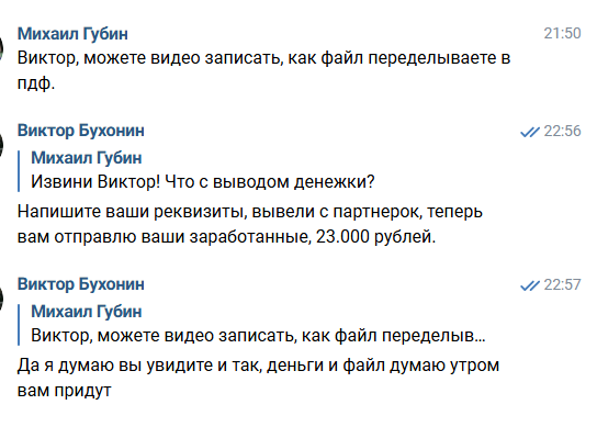 | | | | Это многих пугает, бесит, останавливает, заставляет бросить партнерские программы при неудачах. В общем, то еще неприятное сложное дело. Больше не наш путь! | | | | | | А какой теперь наш путь? | Делать до 300.000 рублей за 2 месяца на партнерских программах через проверенные схемы без вложений, работая 1-2 часа в день. Вам тоже надоело все сложное?Да, понятно, что длинные проекты делать надо. Но можно, если вы только начинаете, делать то, что принесет деньги здесь и сейчас, а потом перейти с заработком уже на что-то более серьезное.Я уже делаю серию коротких видео с заработком быстрых денег. Этих способов немало. И предлагаю вам вот что:1. Получать от меня эти видео и делать у себя.2. Получить до 300.000 рублей за 2 месяца.3. Получить опыт, доход и использовать это для дальнейшего развития в партнерском маркетинге. Если это ваш путь, напишите сюда >>Если нет, не пишите.Места сильно ограничены.P.S. Раньше такие способы давали сделать от 20 до 100 т.р. Сейчас суммы увеличились, потому что возможности расширились. | | | По всем вопросам пишите в ВК или Tg. Обязательно внедряйте. Не делая, ничего не будет.На сегодня все - на связи. | | | | Помните: интернет-бизнес хоть и прибыльное, доступное, растущее, интересное и развивающееся направление, но оно в то же время и - сложное. | | | Вы получили это письмо на электронный адрес [%email%], так как являетесь подписчиком Виктор Бухонина.Вы всегда можете отписаться от рассылки. | | | | | |