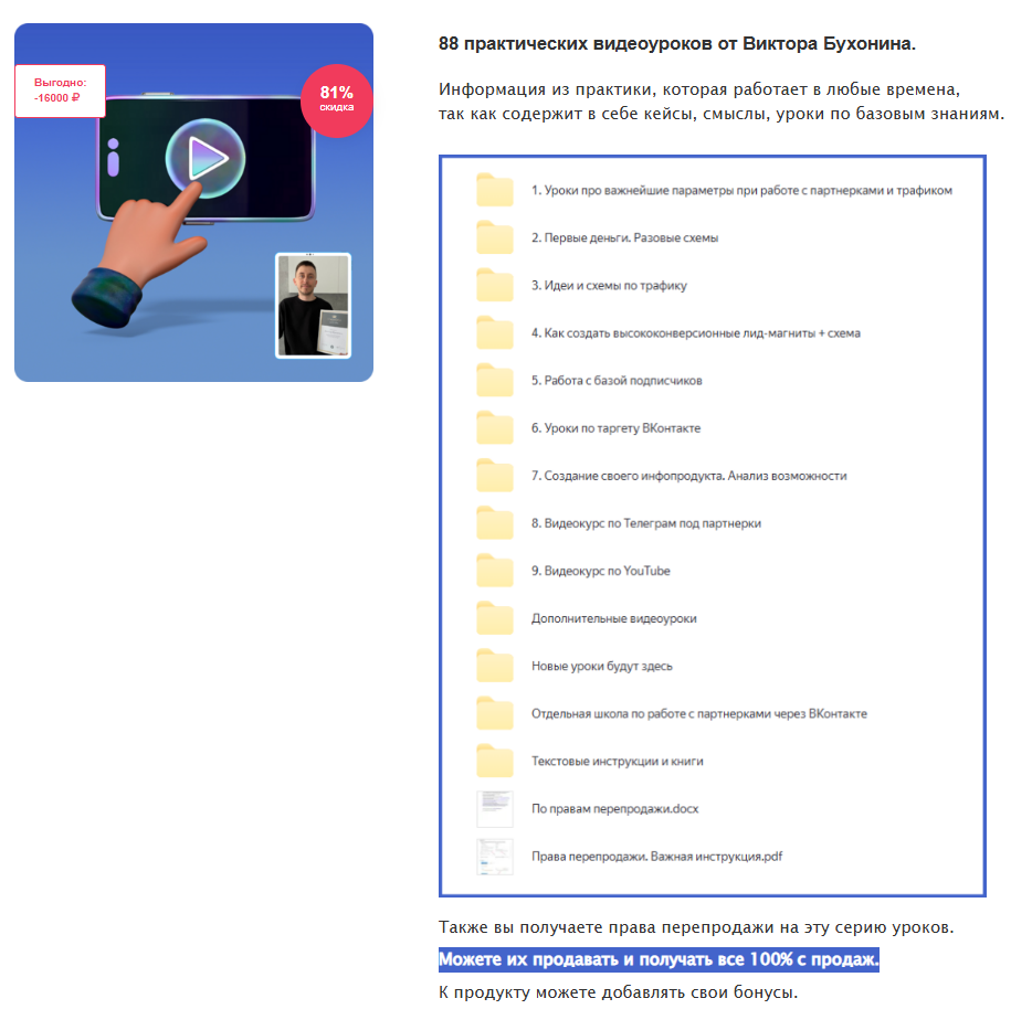 Это 88 уроков по интернет-бизнесу. Уроки актуальные, которые я использую сам. И можете сами изучать уроки.